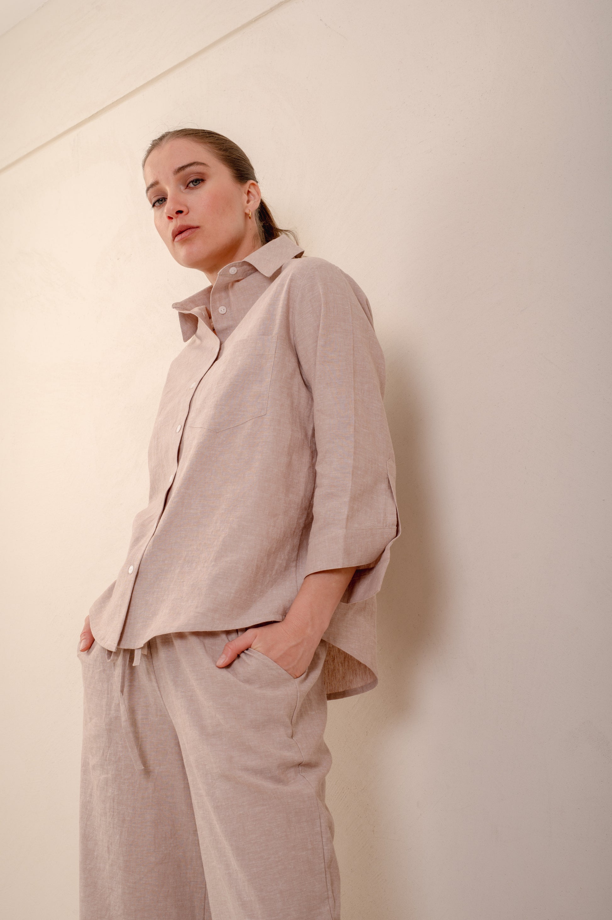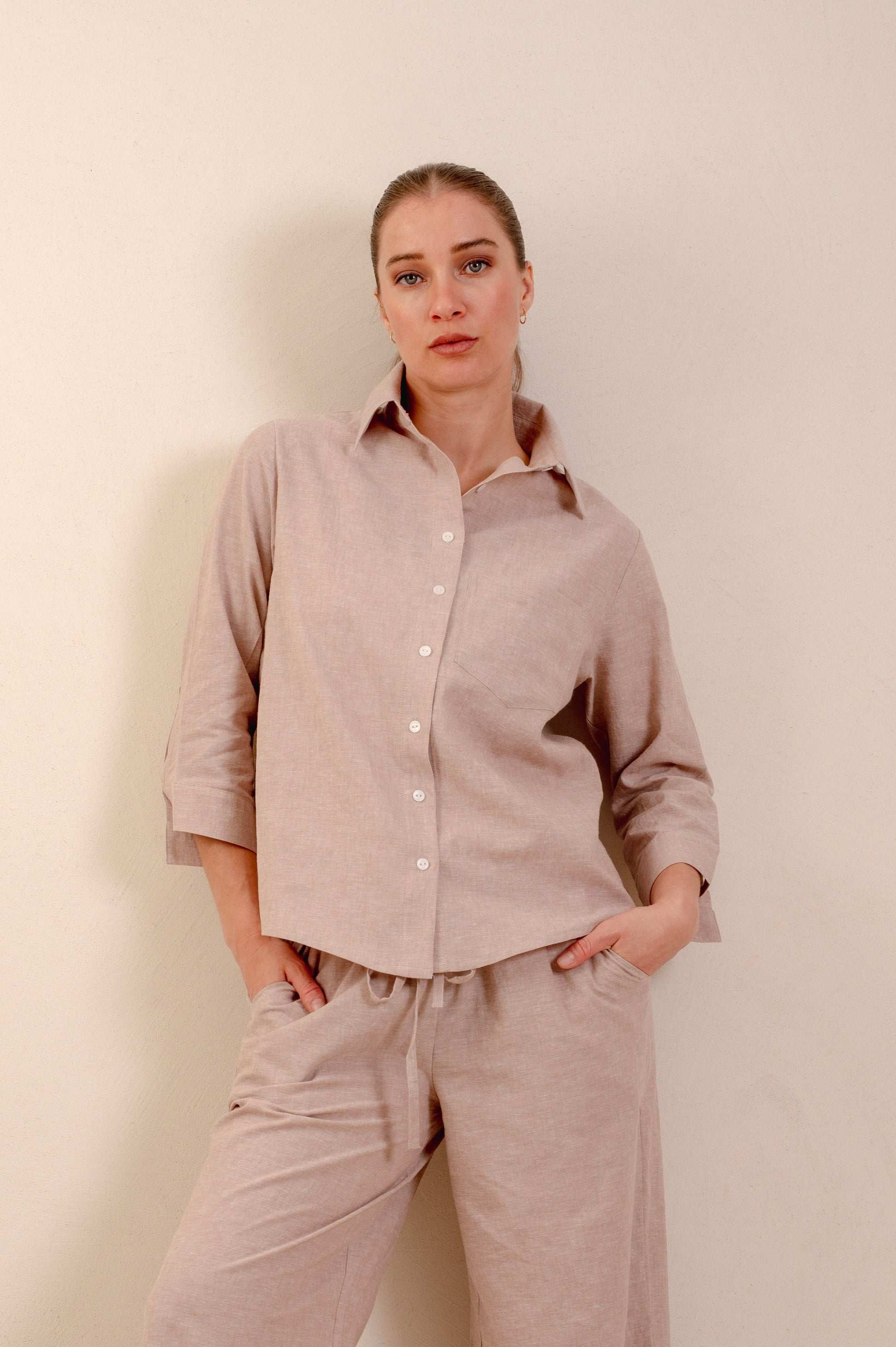 CAMISA LINO MANGA 3/4 BOLSILLO